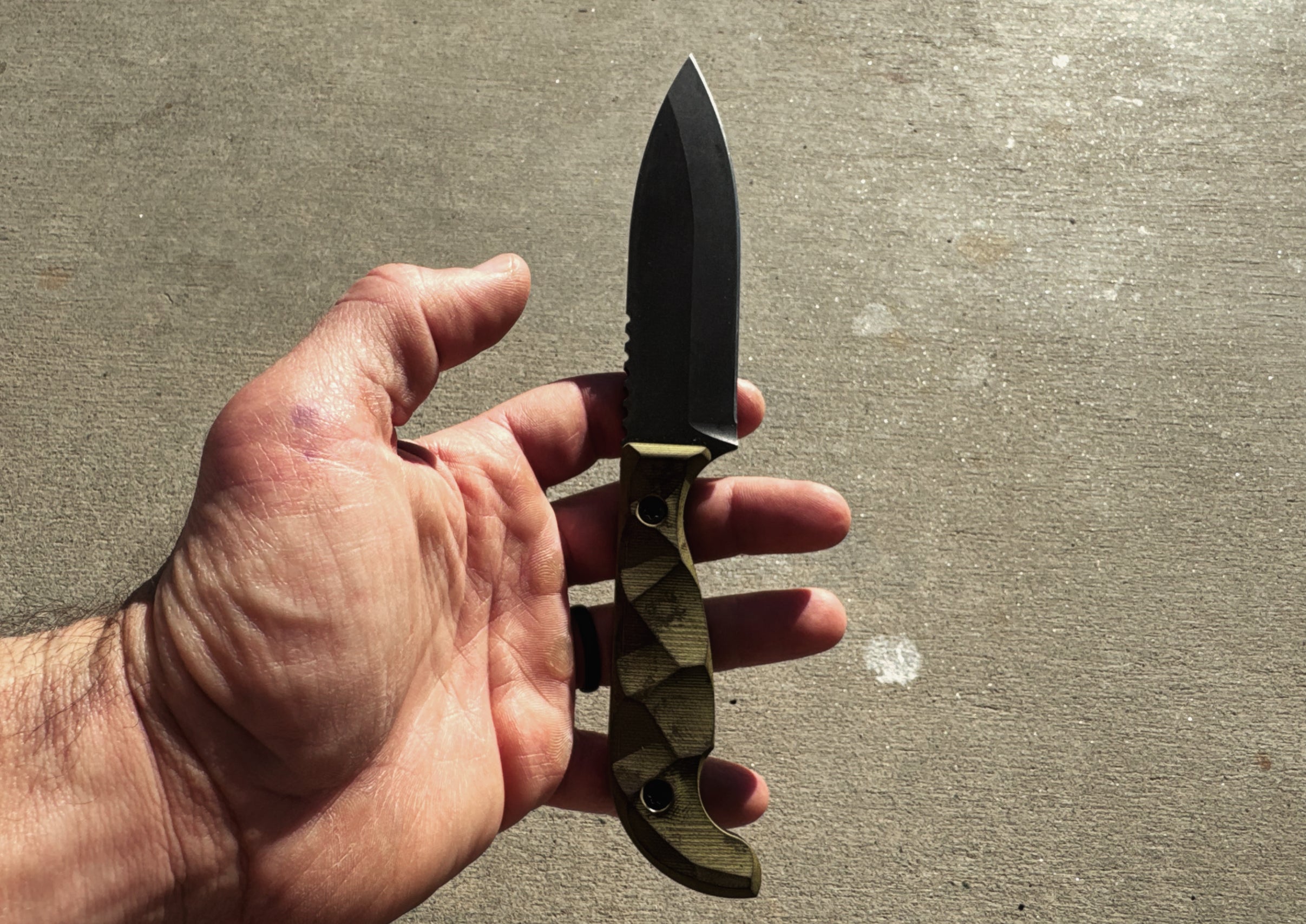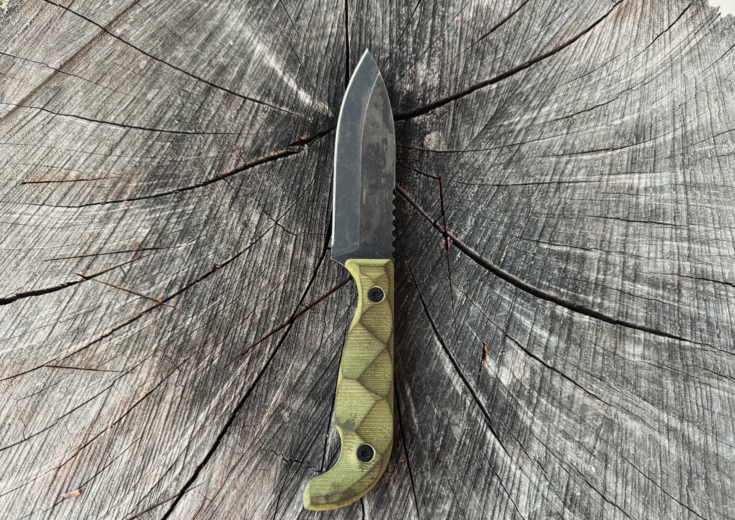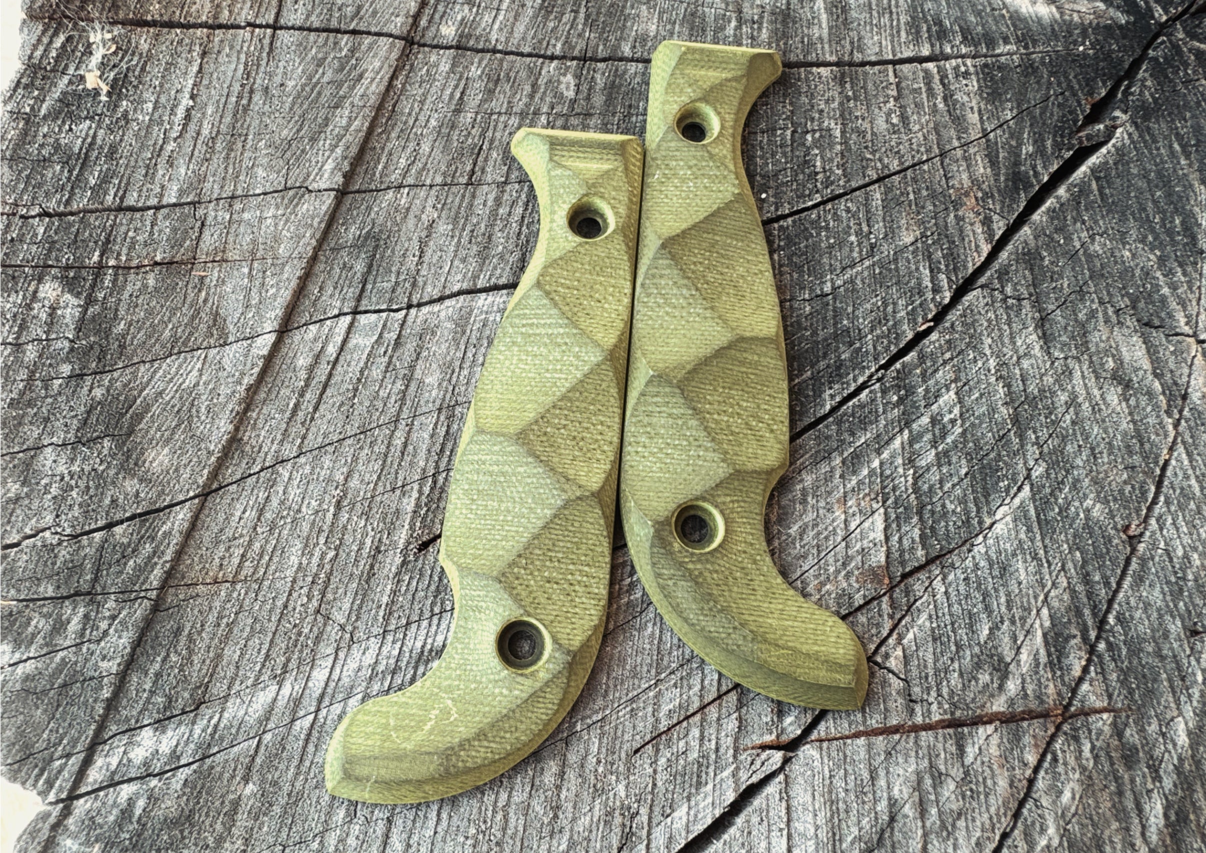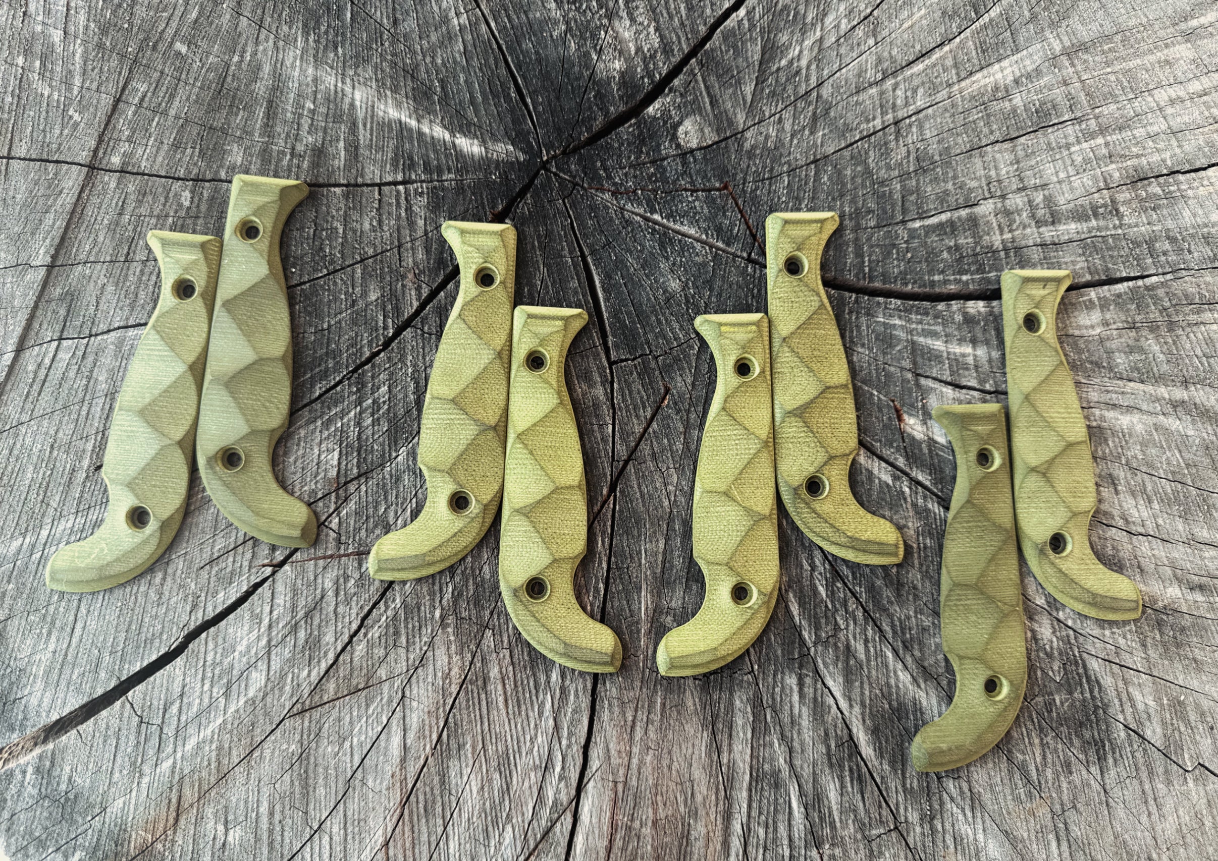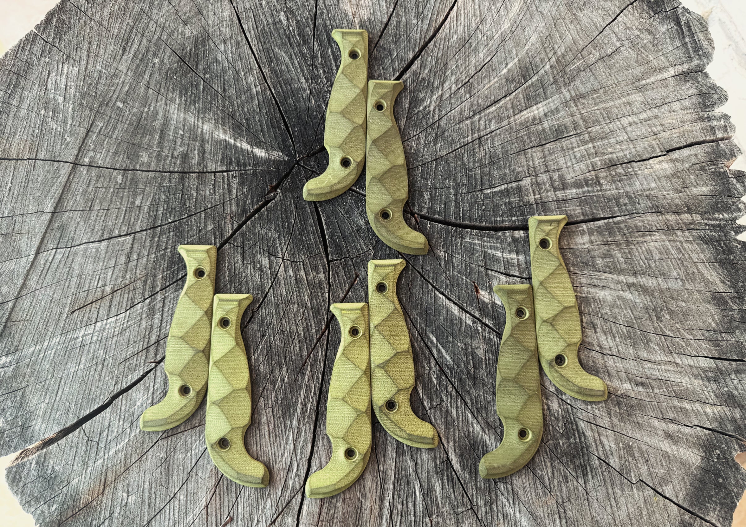 Transform your full-size SEAF with these simple light green (frog colored) grips. Only 4 made. They absorb oils and will personalize to you the more you use the knife.