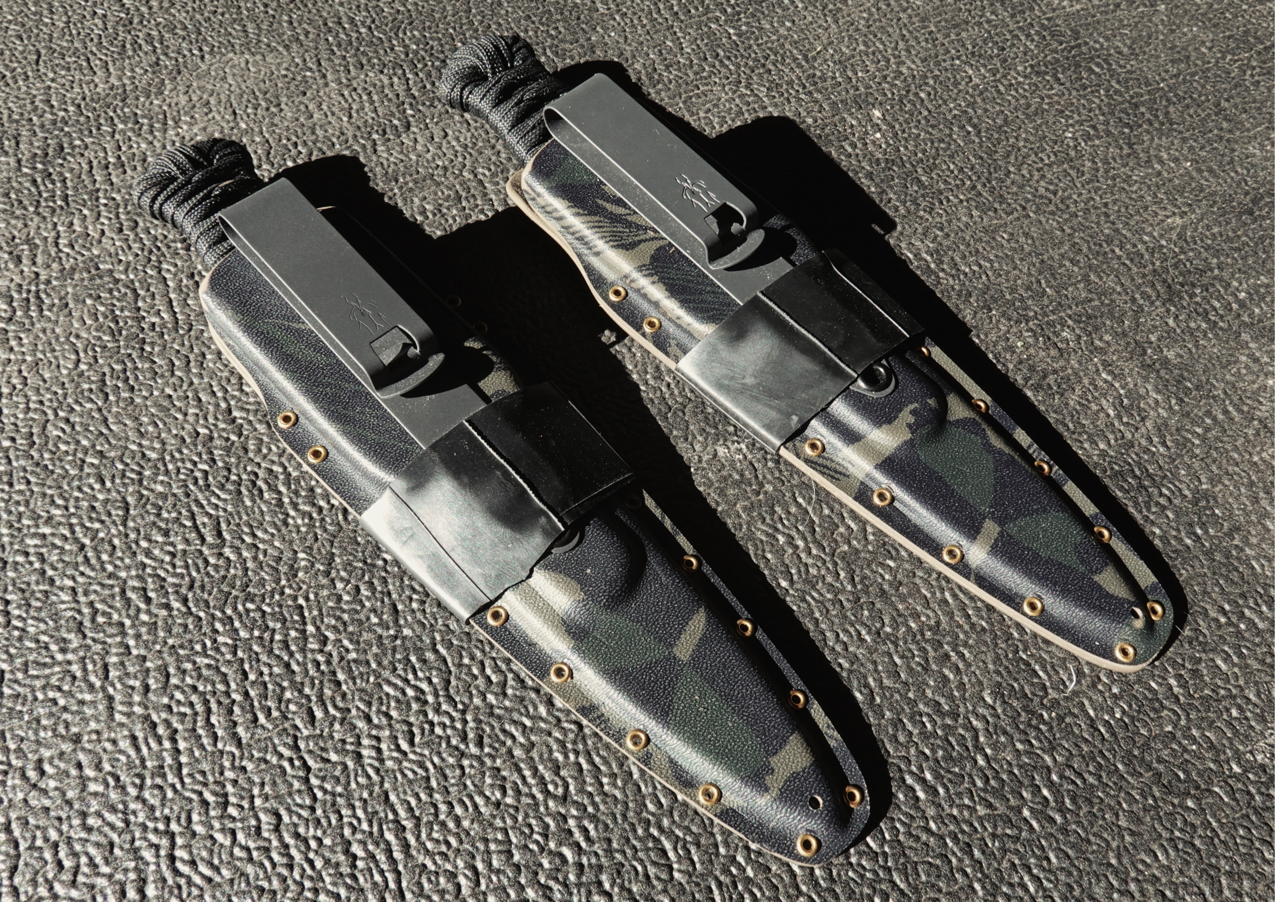 The custom Rhodesian Brushstroke Night Camo Sheath has never been done before. It's a 3/4 sheath for the ultimate hybrid carry solution.