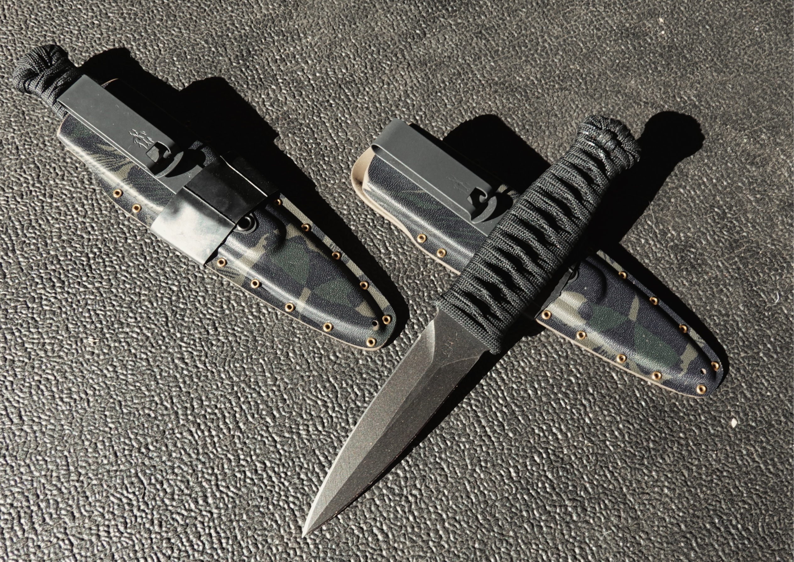 The Wolf Forty JC Dagger Black Cordage Ito wrap reimagines a classic, battle-proven design with modern materials and optimized dimensions. It cuts down weight from 3.6oz knife to 2.6oz. Crafted from Nitro-V steel, this blade offers outstanding corrosion resistance, edge retention, and toughness, delivering a razor-sharp edge that excels in demanding conditions. The Black Cordage handle ensures a secure, comfortable grip, blending form with function.